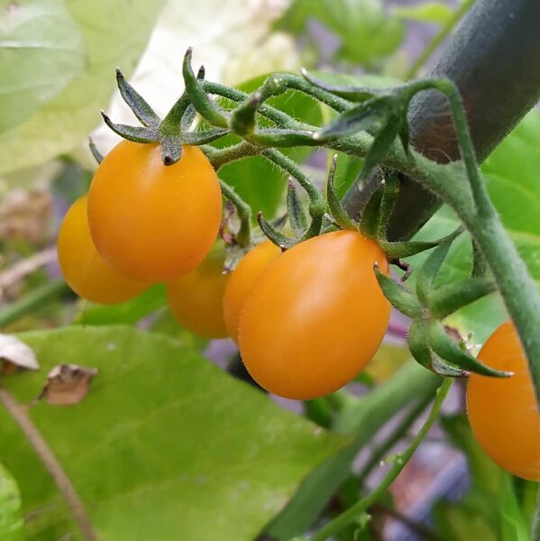 • Üppig tragende Wildtomate von den Galapagos Inseln mit relativ großen, gelben Früchten.