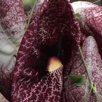 • Tropische Kletterpflanze mit marmorierten, violetten, auffälligen Blüten.