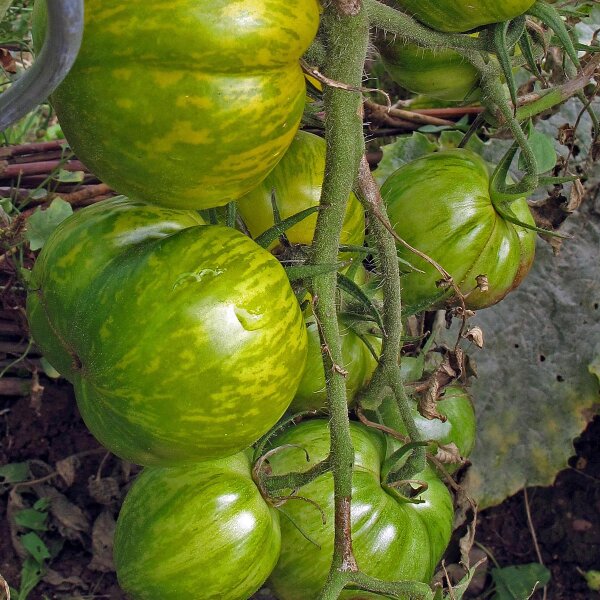 • Die Tomatensorte 'Grünes Zebra' gehört zu den Klassikern unter den alten Tomatensorten.Früher wurden grüne Sorten wegen ihrer Robustheit und des fruchtigen Geschmacks häufig angebaut.